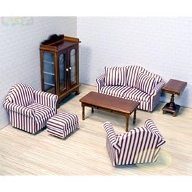 Our first reaction was, “Wow this looks like real furniture!” This dollhouse living room set is very life-like and would be great in human size! It is very sturdy, well-made, and comes packaged securely to prevent damage in shipping. Fits very nicely in the matching dollhouse and is absolutely adorable!